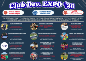AFL Sydney are excited to announce the return of the Club Development Expo in 2026, on Sunday 15th Feb at ACPE, Homebush.
