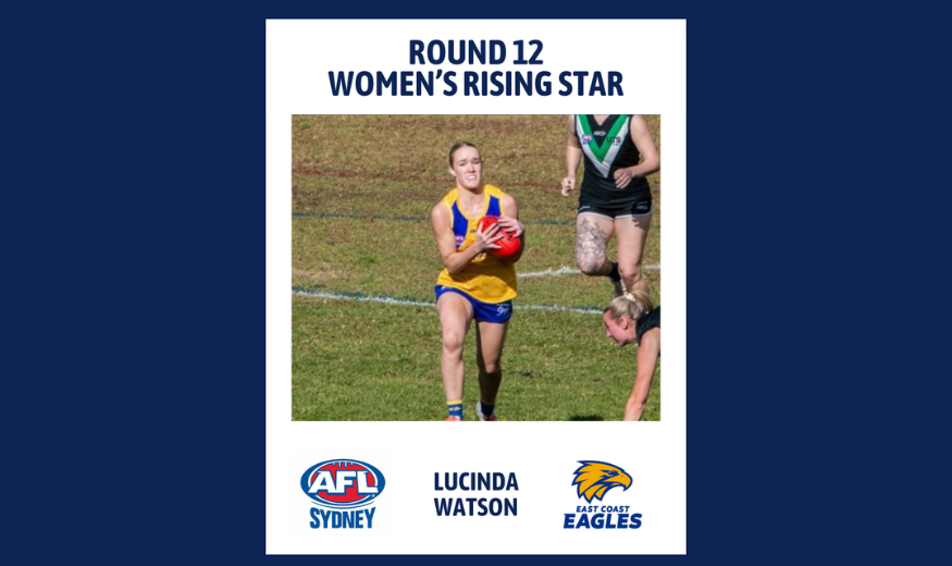Player Profile: Name: Lucinda Watson Nickname: Luce, CC, Low to the Ground Luce AFL Sydney Club: East Coast Eagles Junior Club: Killarney Vale Bombers Position: Half Forward / Midfield What is one thing that we don’t know about this Rising Star…