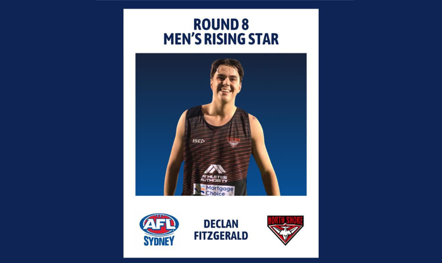 Player Profile: Name: Declan Fitzgerald Nickname: Decs AFL Sydney Club: North Shore Bombers Junior Club: Willoughby Junior AFL Club/Lane Cove Cats Junior AFL Club Position: Wing What is one thing that we don’t know about this Rising Star that they are well…