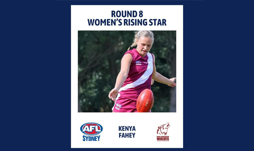Player Profile: Name: Kenya Fahey Nickname: Kenny AFL Sydney Club: Manly Warringah Wolves Position: Midfield What is one thing that we don’t know about this Rising Star that they are well known for around the club? Medallist at Aussie Surf Life…