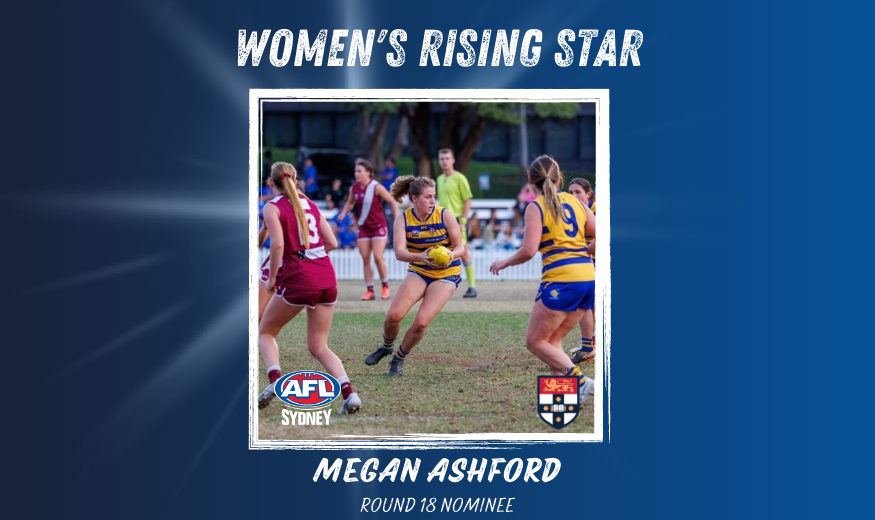 – Player Profile Name: Megan Ashford Nickname: Meg, Megs or Smash AFL Sydney Club: Sydney University Position: Midfielder Junior Club: Northern District Tigers JAFC in AFL South Coast. What is one thing that we don’t know about this Rising Star…