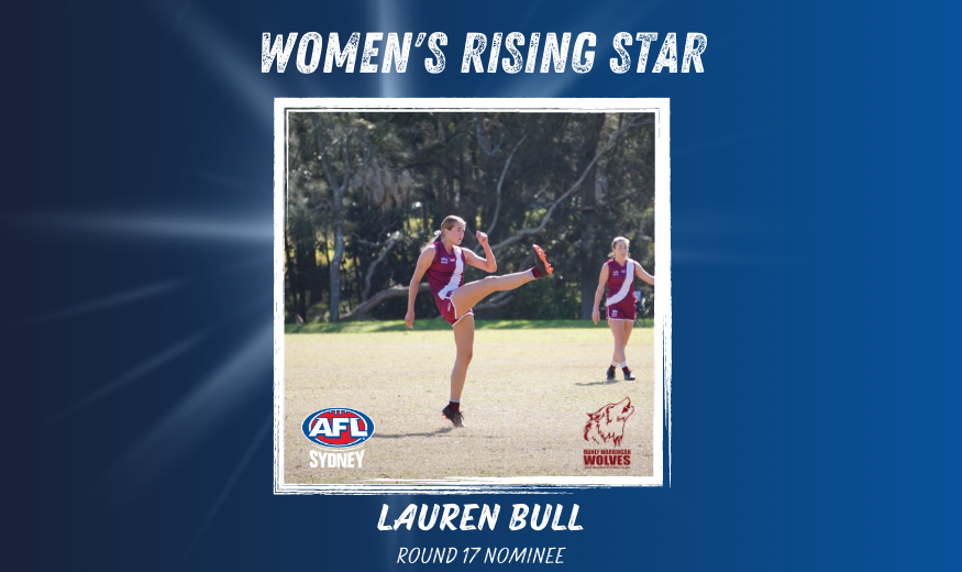 – Player Profile Name: Lauren Bull Nickname: Dozer AFL Sydney Club: Manly Warringah Wolves Position: Full forward Junior Club: Forest Lions What is one thing that we don’t know about this Rising Star that they are well known for around…