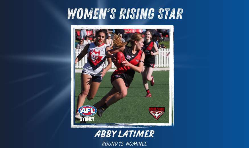 – Player Profile Name: Abby Latimer Nickname: Abs AFL Sydney Club: North Shore Bombers Position: Half Back Flank Junior Club: St Ives What is one thing that we don’t know about this Rising Star that they are well known for…