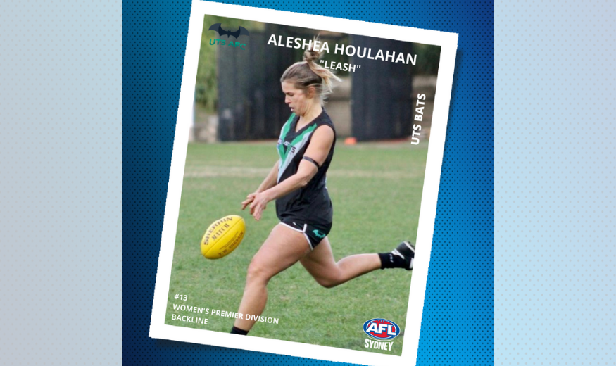 Get to know UTS Bats Women’s Premier Divison Player, Aleshea Houlahan! Name: Aleshea Houlahan Nickname: Leash.. not very creative AFL Sydney Club: UTS Bats Junior Club: n/a Position/s: Back line Playing Number: 13 Usual Grade: Women’s Premier Division First season…