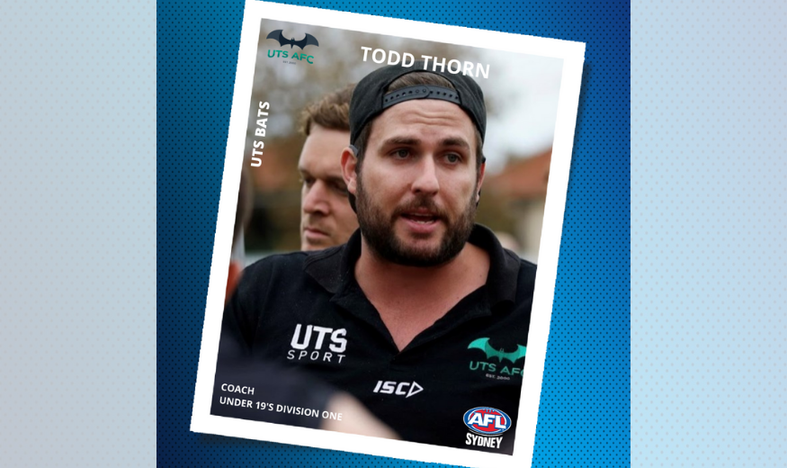 Get to know UTS Bats Coach, Todd Thorn! Name: Todd Thorn AFL Sydney Club: UTS AFC Grade Coached: Under 19’s Div 1 How long have you been coaching for? I’ve been involved in coaching for 5 years and this year…