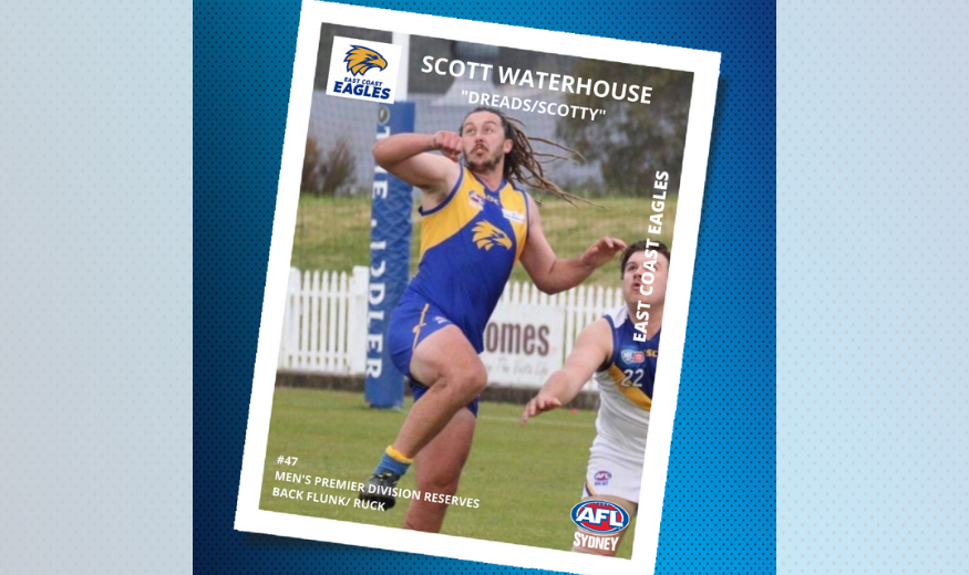 Get to know East Coast Eagles Men’s Player, Scott Waterhouse! Name: Scott Waterhouse Nickname: Dreads or Scotty AFL Sydney Club: East Coast Eagles Junior Club: Didn’t have one Position/s: Back Flank/ Ruck Playing Number: 47 Usual Grade: Reserve grade First…
