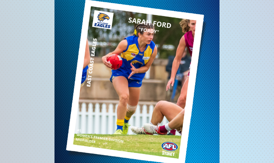 Get to know East Coast Eagles Women’s Premier Division Player, Sarah Ford! Name: Sarah Ford Nickname: Fordy AFL Sydney Club: East Coast Eagles Junior Club: n/a Position/s: Midfield Playing Number: 5 Usual Grade: Premier division First season of AFL Sydney…